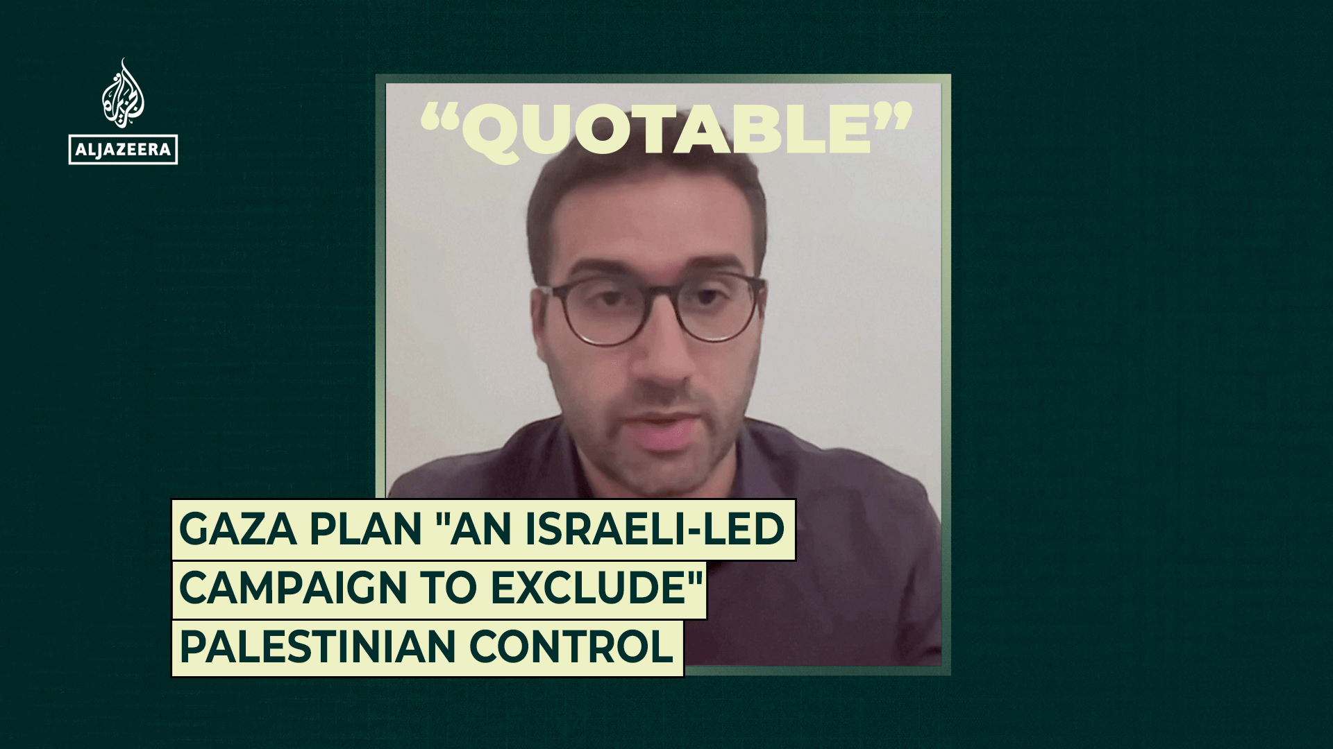 ഗാസ ആസൂത്രണം “ഫലസ്തീൻ നിയന്ത്രണം” ഒഴിവാക്കാനുള്ള ഒരു ഇസ്രായേലി-നേതൃത്വത്തിലുള്ള പ്രചാരണം ലോകം ഒക്ടോബർ 4, 2025Al Jazeera ഗാസയുടെ ഭാവി രൂപപ്പെടുത്തുന്നതിൽ നിന്ന് ഫലസ്തീനികൾ പാലെസ്റ്റിനിയക്കാരെ സഹായിക്കുന്നുവെന്ന് അനലിസ്റ്റ് അംജാദ് ഇറാഖി. Al Jazeera